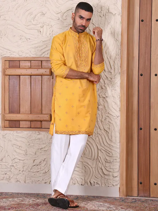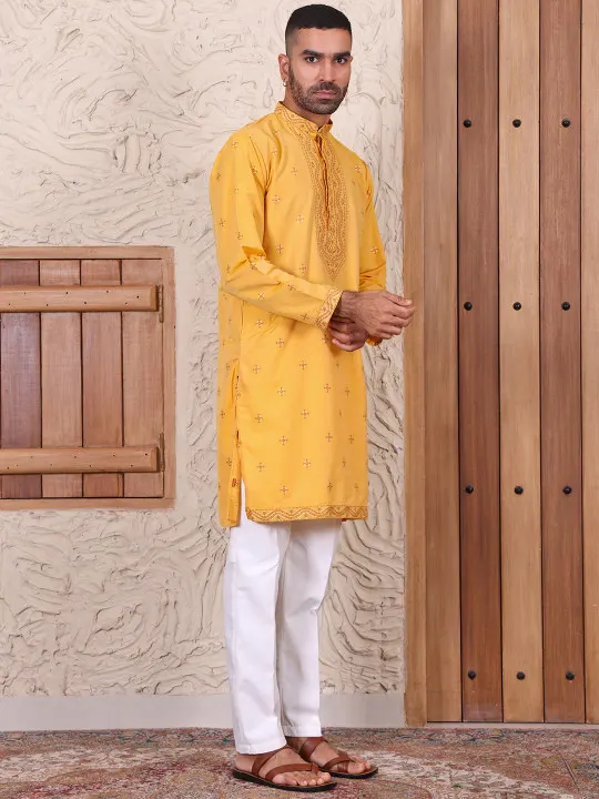Yellow embroidered Kurta with Trousers