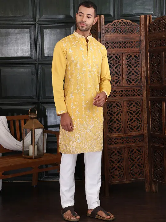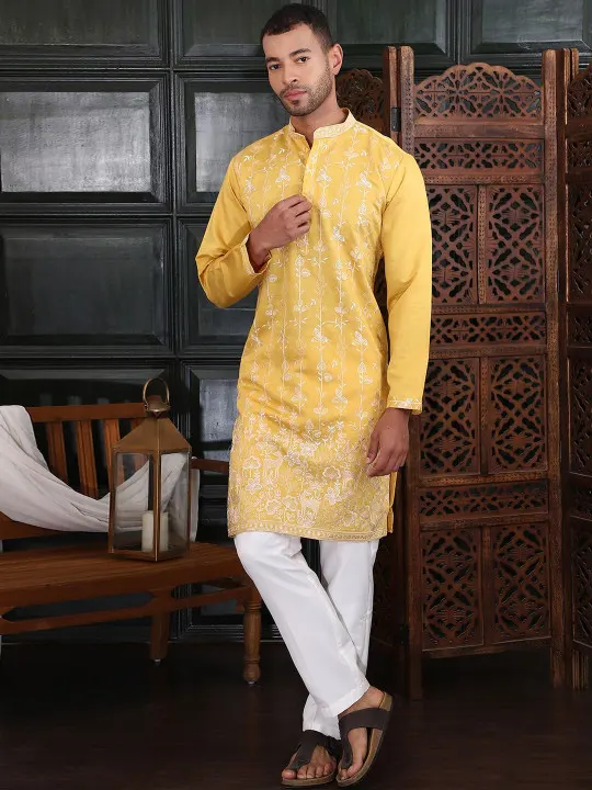 Yellow embroidered Kurta with Trousers